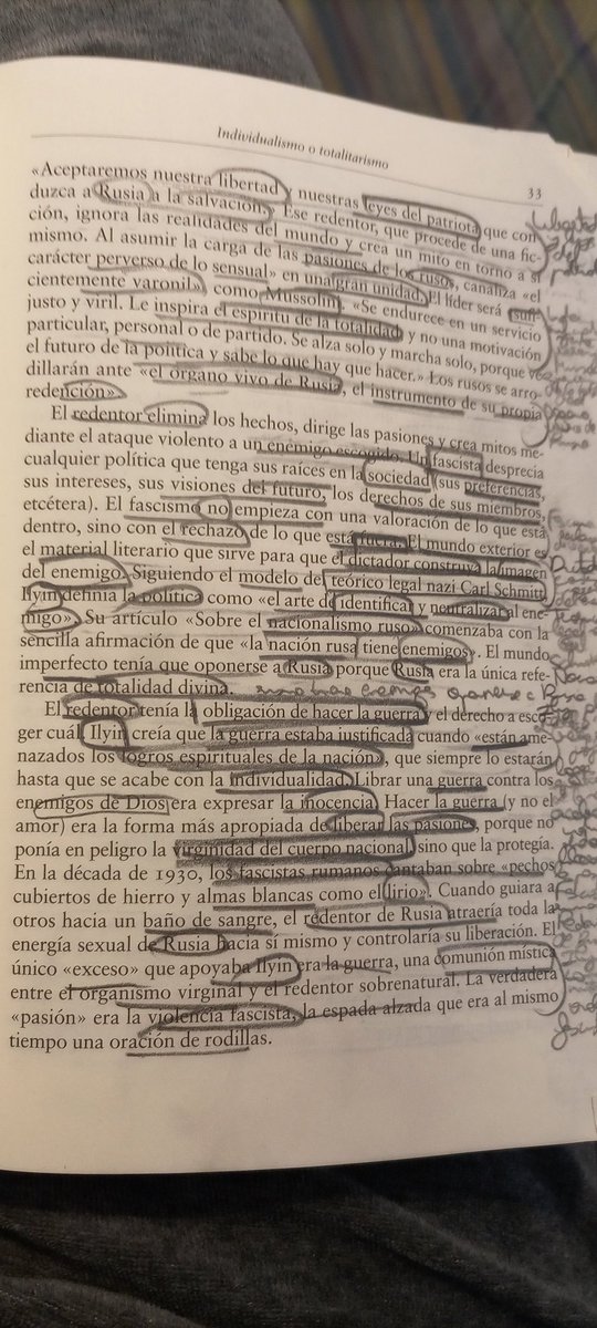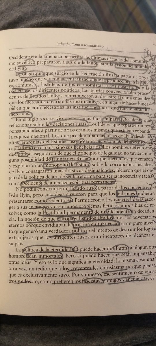 pudiesen presentarse como redentores". Por último, Snyder afirma la virtud del individualismo. Así acaba el primero de los seis capítulos del libro. En los otros iba a 100 páginas por hilo, en este he abarcado 50 porque creo que es importante abarcar en profundidad al que Putin