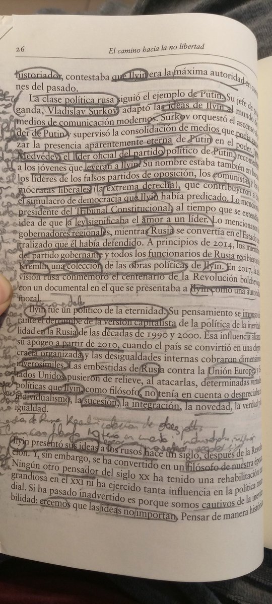 Voy a realizar la primera parte (Ilyin) del hilo de "El camino a la no libertad" de @TimothyDSnyder. La política de la inevitabilidad es la idea de que no existen ideas que importen. Se dice que de inevitabilidad surge la eternidad como espectro"." Movilidad social se interrumpe