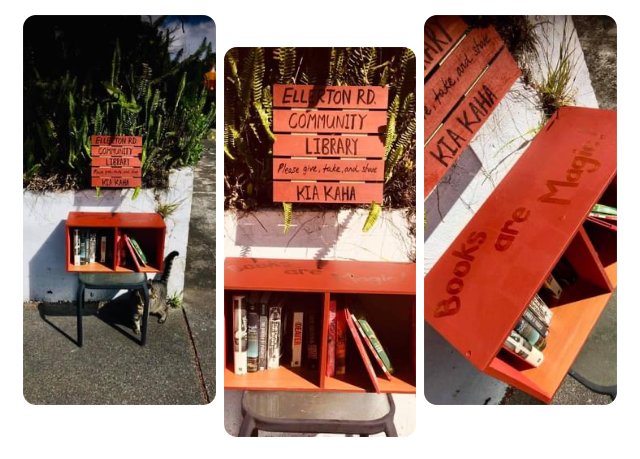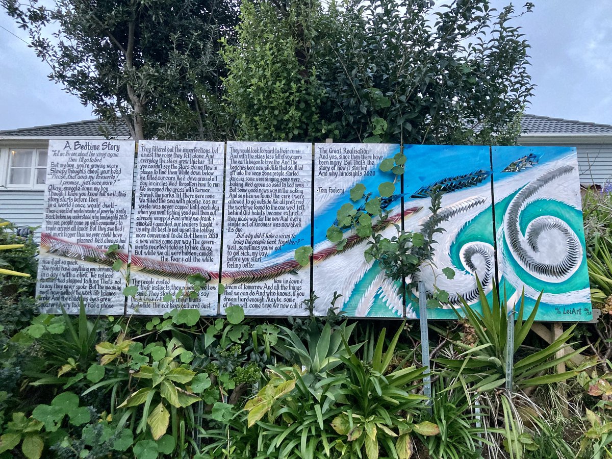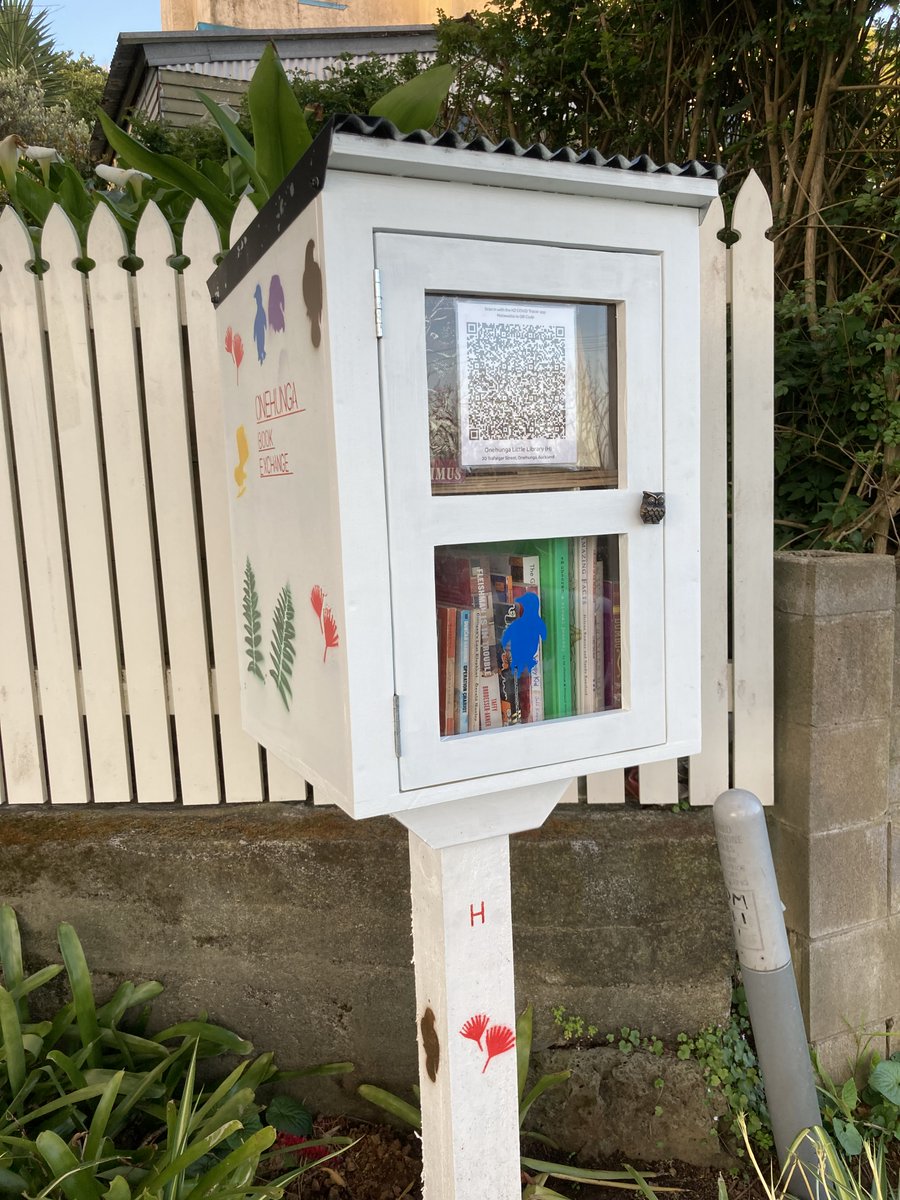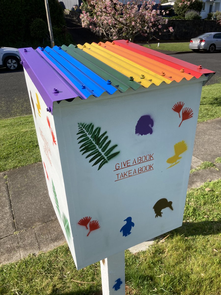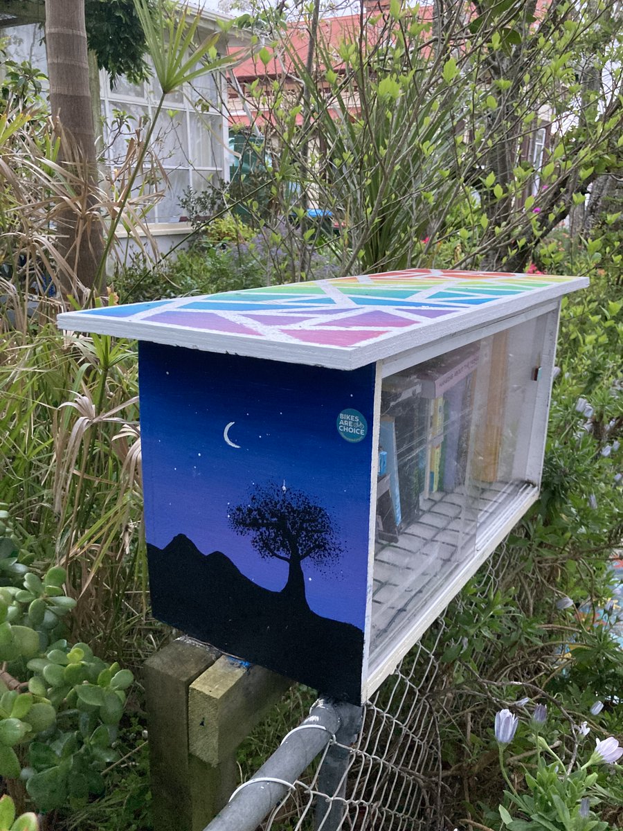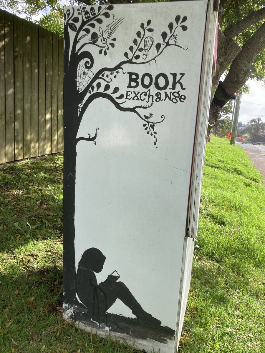 I quickly found there were many more around than I had dreamed of, just from asking on community FB pages in nearby suburbs. There was the Book Stop in Three Kings for example, at a lovely little community sharing spot created during early lockdowns. It includes this artwork. 7/n