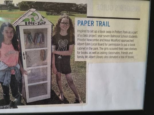 ... my medium junior associate and I ventured out to Ponsonby with some books and a note. We found not only a beautifully decorated book box but also a bench and a swing and a berm garden! I nervously left my polite note in the bench with my email and phone number. 14/n