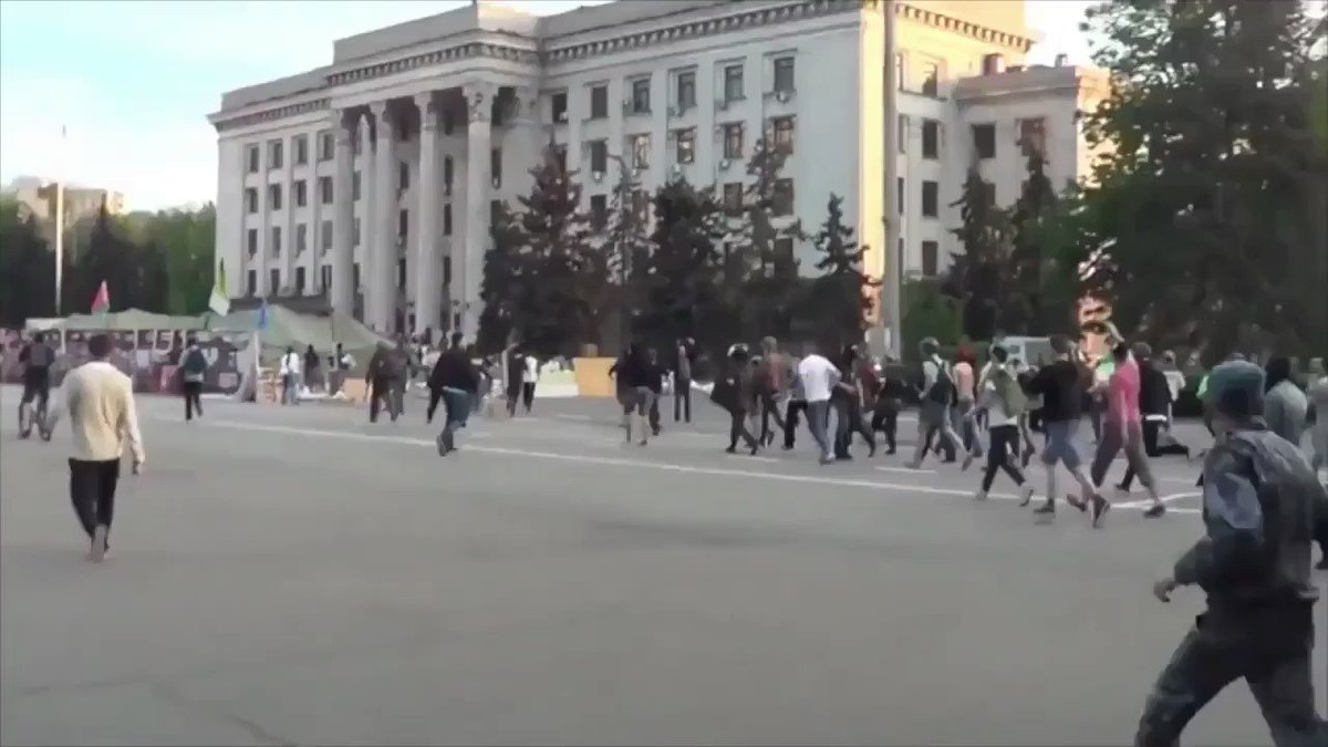 Os manifestantes pró-Rússia que pulavam e sobreviviam eram cercados e espancados pelos neonazistas. A polícia ucraniana presenciou o ataque sem intervir. Nas redes sociais, simpatizantes do Euromaidan se gabavam do ataque.