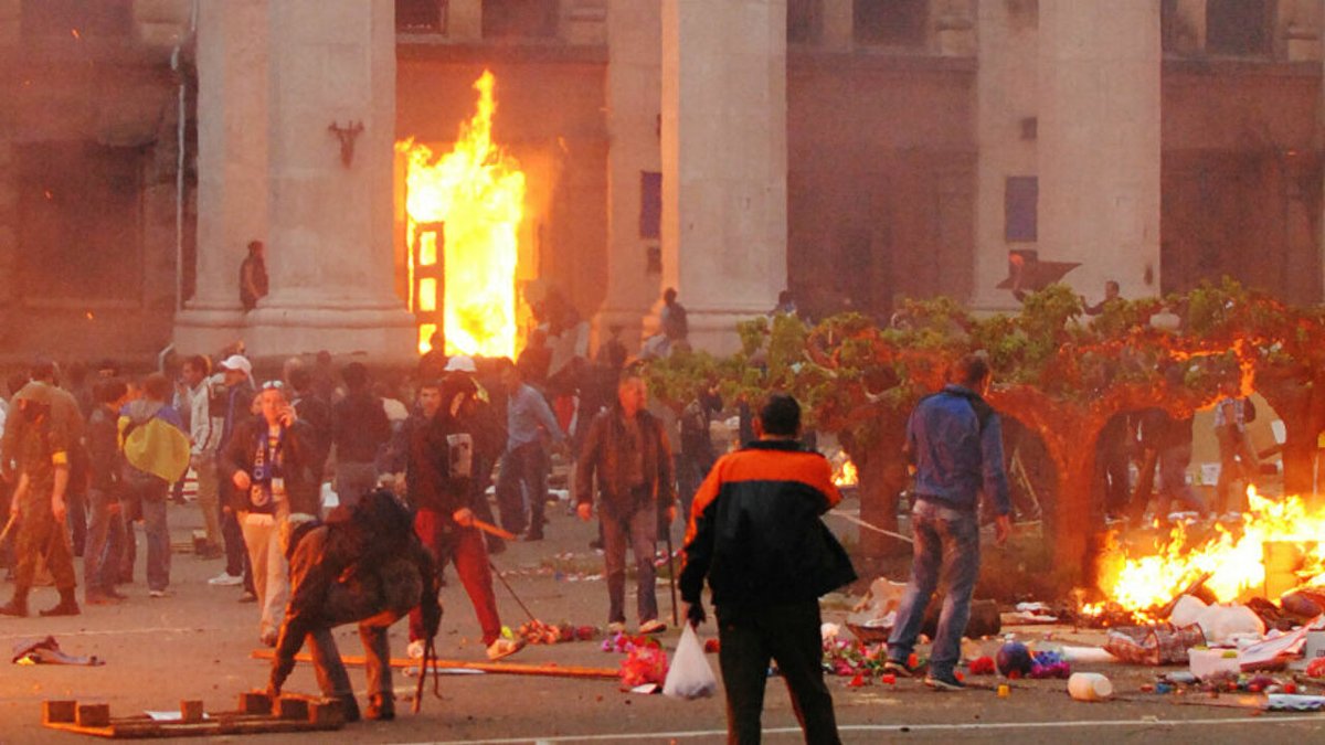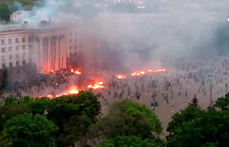O ataque foi liderado pela milícia paramilitar neonazista Pravyy Sektor ("Setor Direito"), que invadiu e incendiou prédio auxiliada por hooligans do clube Chernomorets. Eles perseguiam manifestantes pró-Rússia que se esconderam no edifício. 39 pessoas morreram carbonizadas.