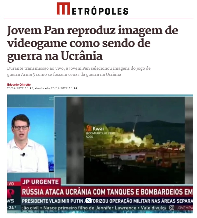 Gonzalo Hernández, do site mexicano Xataca, fez um compilado dessas falsificações. Um dos primeiros vídeos a viralizar supostamente mostraria o sistema antiaéreo da Ucrânia tentando abater um bombardeiro russo. Mas a imagem foi recortada do jogo de videogame "Arma 3".