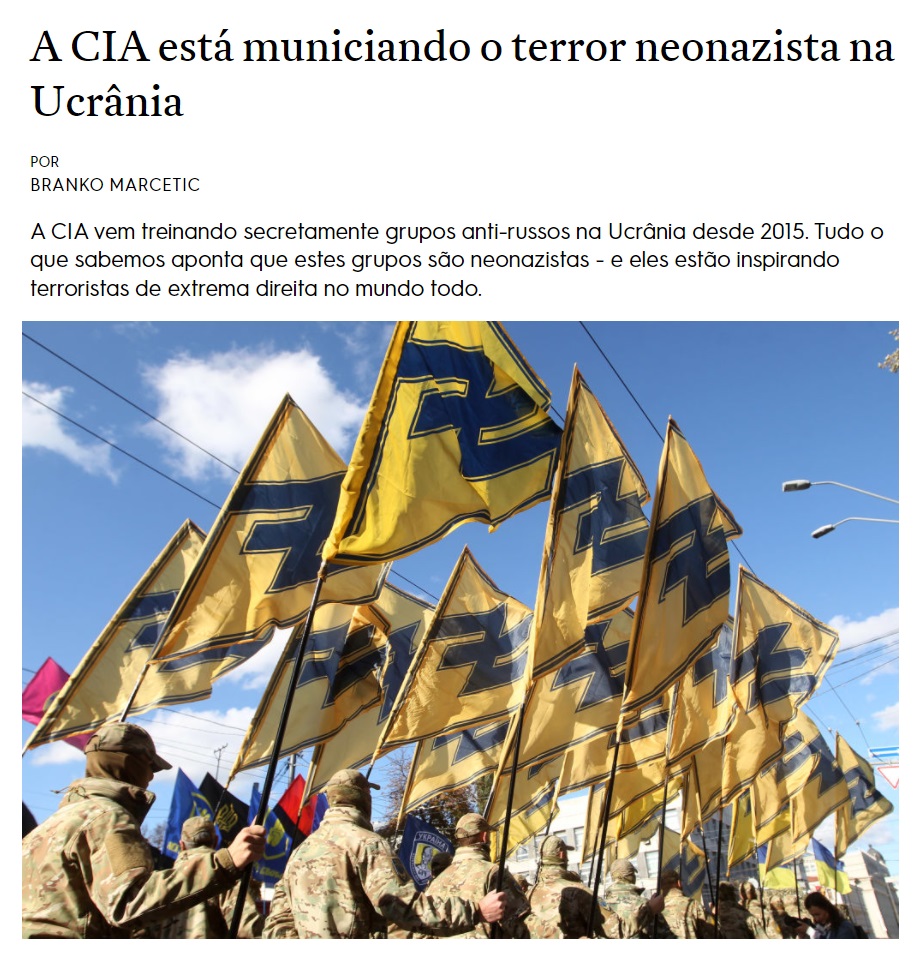 É bizarro ver a mesma esquerda que estava acertadamente criticando o PCO pela posição absolutamente equivocada sobre a fala de Monark tentar revestir com ares de legitimidade o governo filonazista que ascendeu na Ucrânia com apoio dos EUA após o golpe de 2014.