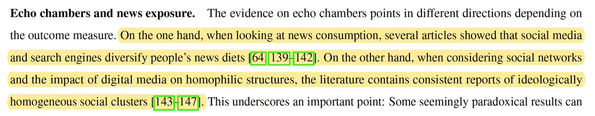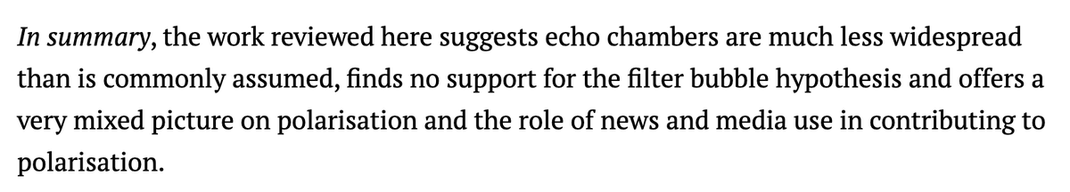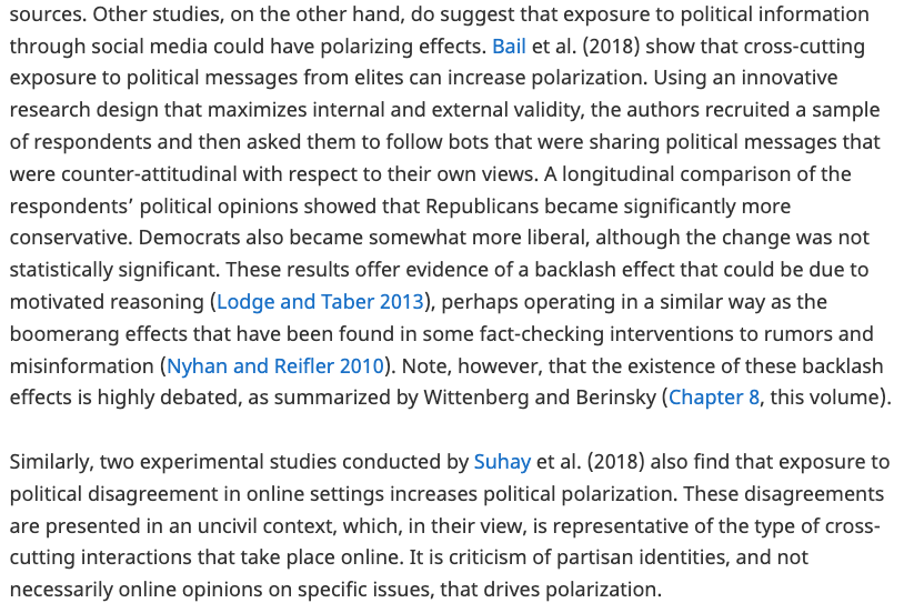 Studierne i review #2, der viser, at sociale medier polariserer, fokuserer netop på eksponeringen af modsatte synspunkter. 👇(11/15)
