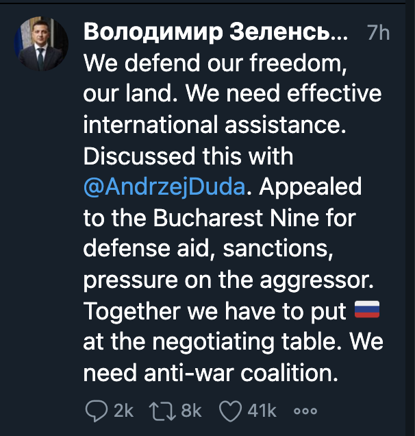 10/ P.S.2 El presidente Zelensky está consciente de que no va a recibir apoyo militar directo, pero los "defensores de Ucrania" súbitos (que hace cuatro días no la encontraban en el mapa) ni siquiera miran para Zelensky, son ellos los que quieren casito y se sienten estrategas.