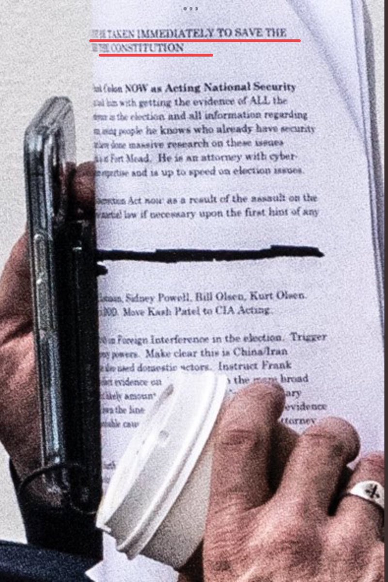 That photo when enhanced shows the text of what was on the papers he was holding. This was definitely not about pillows. Why is Mike Pillows meeting with trump in WH to discuss issues of national security (and the election)? Let’s see what we can see when we look at it closer.