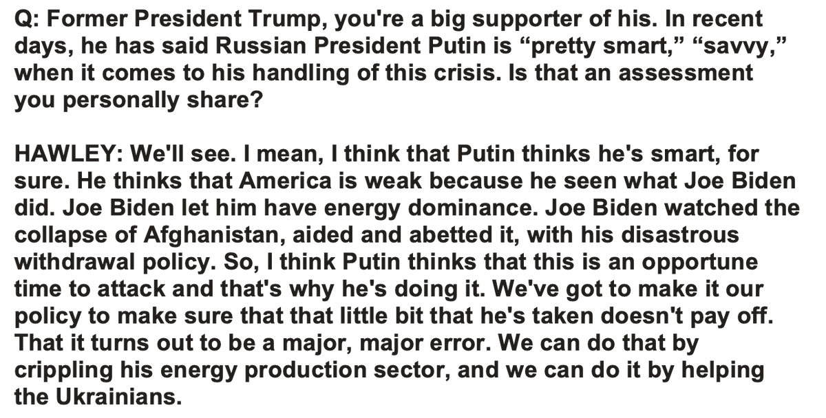 Revealing snapshot of GOP politics as Russia attacks Ukraine: asked two possible 2024 Rs today about Trump's "smart" and "savvy" remarks about Putin. Both of them responded in similar ways. They refused to directly criticize Trump and quickly pivoted toward criticism of Biden...