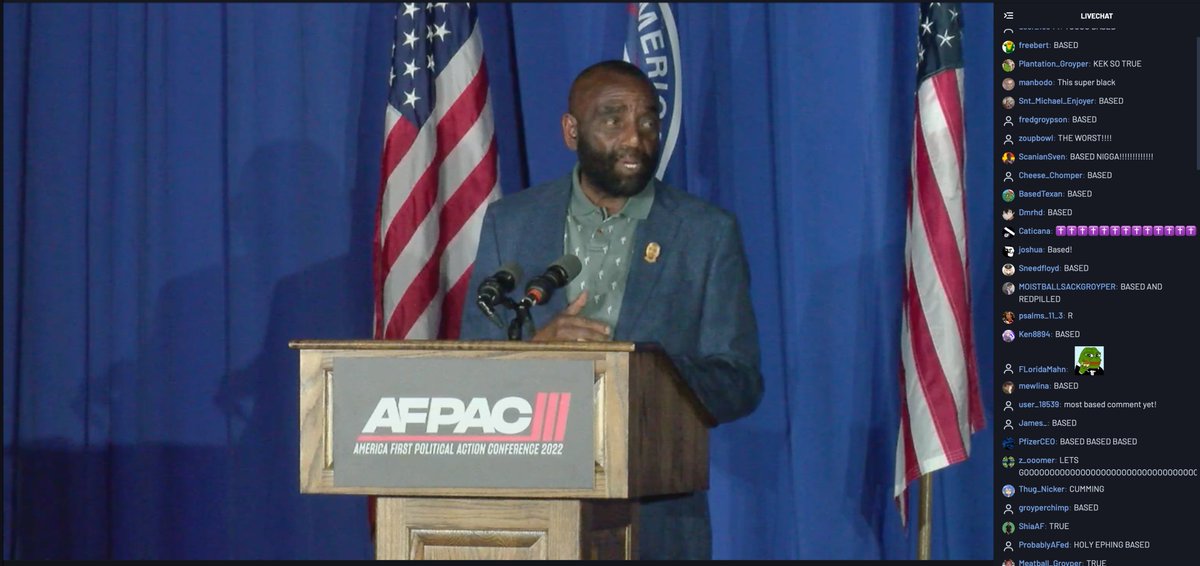 Idaho Lt. Gov Janice McGeachin (current Trump-endorsed candidate for governor) congratulated the groypers on 3 years of AFPAC- "keep up your good work fighting for our country". Then the screen seemed to accidentally display five minutes of rehearsal footage. Groypers dismayed!