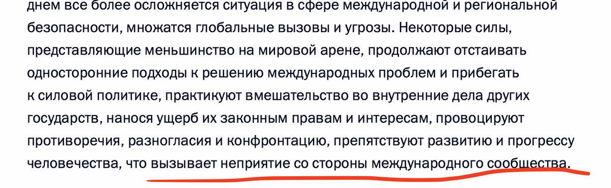 We see this in the preamble, where they talk about Western / US interference in other countries' internal affairs, which is "rejected by the international community."