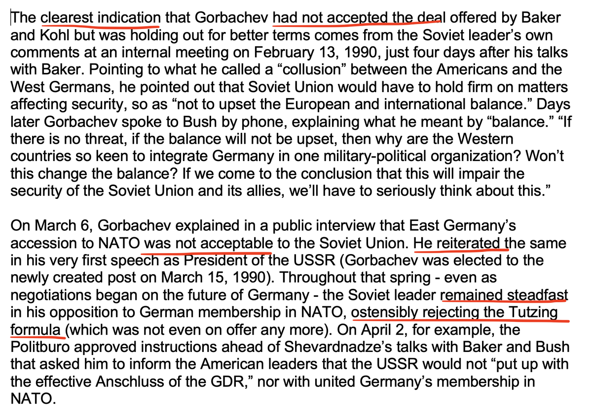 This is because the facts of the story are well-known. I would suggest reading @e_sarotte and @shifrinson in particular, who are detailed and brilliant, and of course the relevant documents are downloadable here: nsarchive.gwu.edu/briefing-book/…. Be sure also to read Mary's new book.
