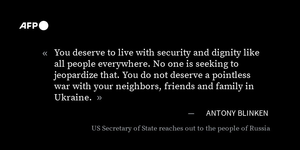 US Secretary of State Antony Blinken has reached out to the people of Russia in their own language, saying they do not deserve a "pointless war" against their Ukrainian neighbors