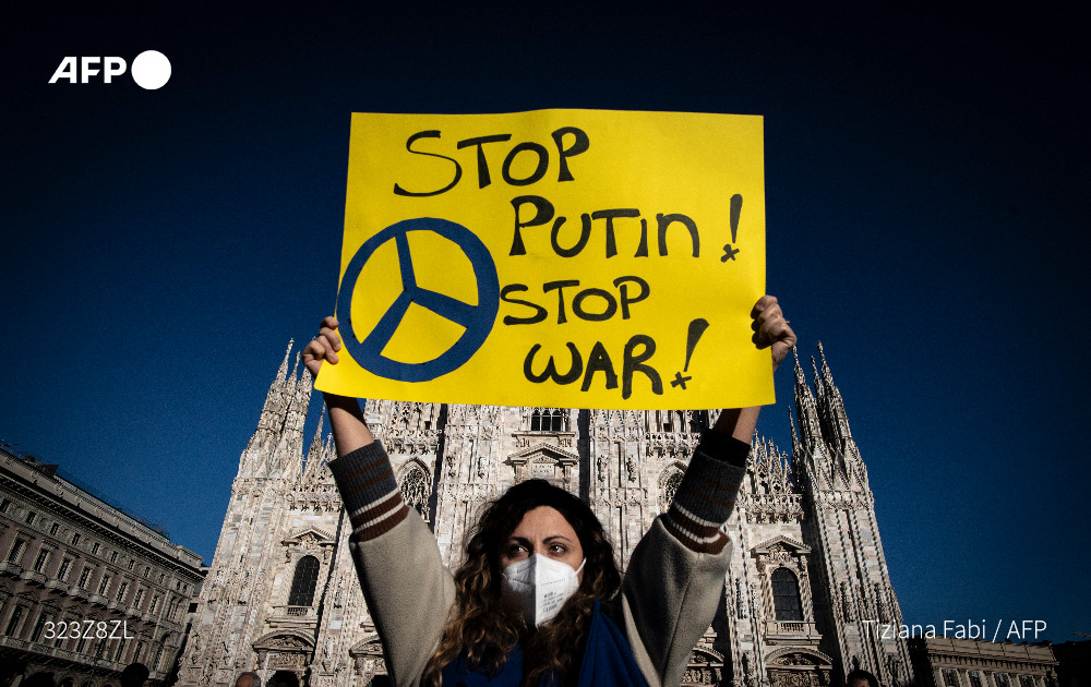 Pro-Ukraine protests erupted across the world on Saturday, as thousands took to the streets from London to Rome to Barcelona to denounce Russia's assault on its neighbour u.afp.com/wAmA