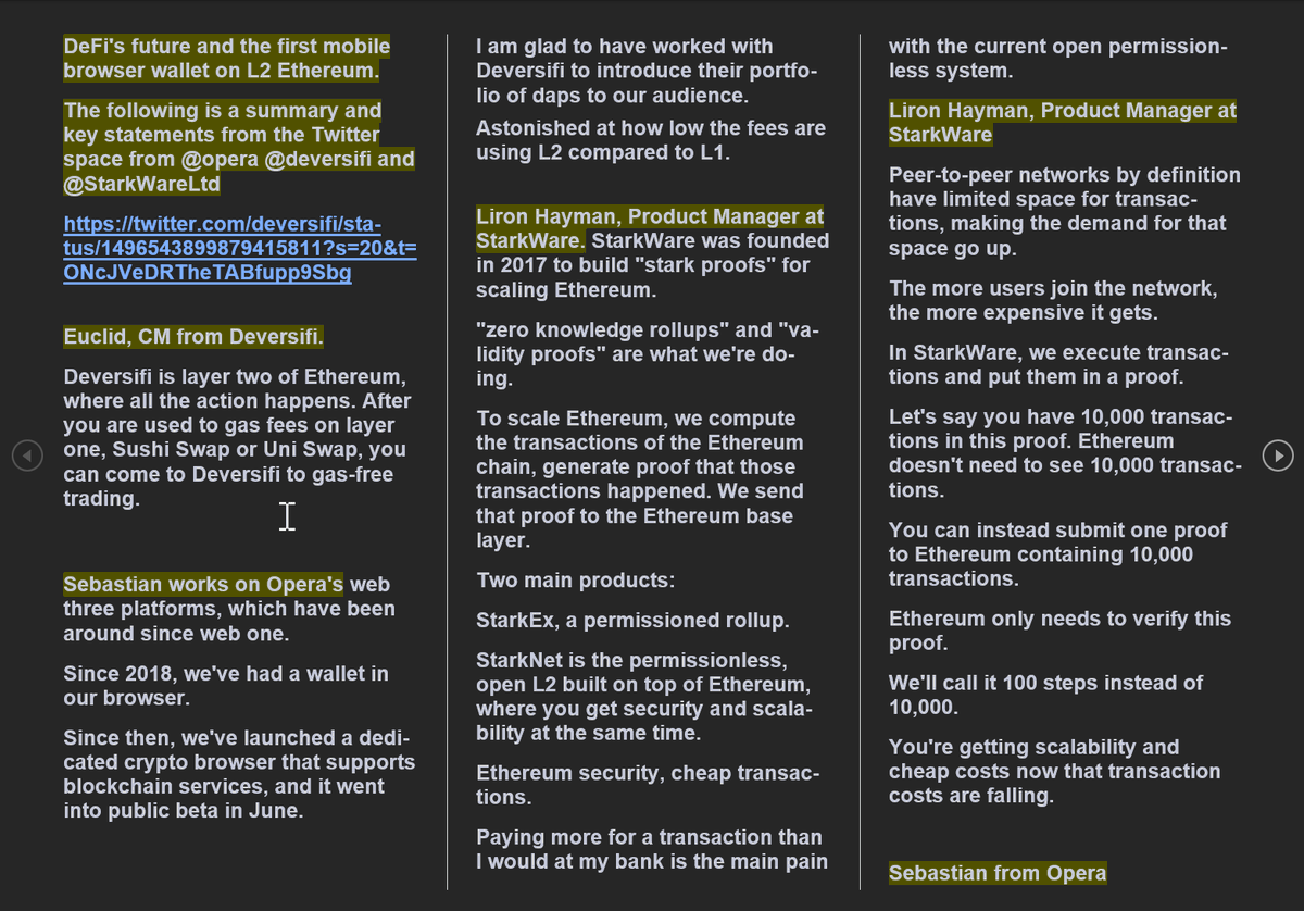 At the heart of this is the first mobile browser wallet for L2 Ethereum from @opera, the defi trading setup from @deversifi, and the Ethereum transaction compression service from @StarkWareLtd