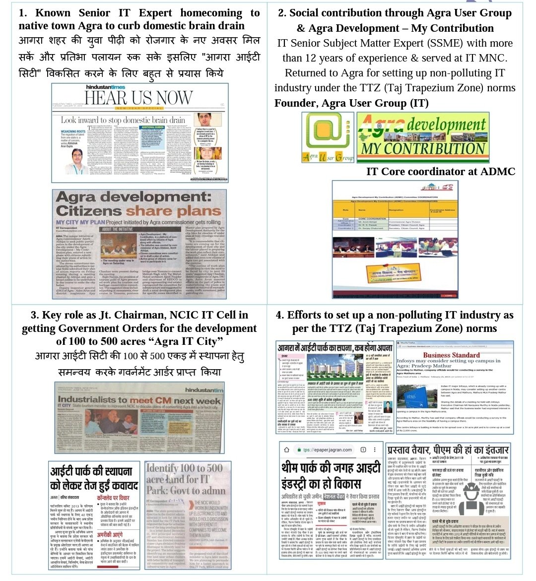 आगरा से बाहर 10 साल पढ़ने और Senior IT Expert के तौर पर कार्यरत रहने के बाद 2011 में #AgraITHub बनाने के उद्देश्य से मैं आगरा लौट कर आया और आप सबके सहयोग से प्रयासरत हूँ। @GWR