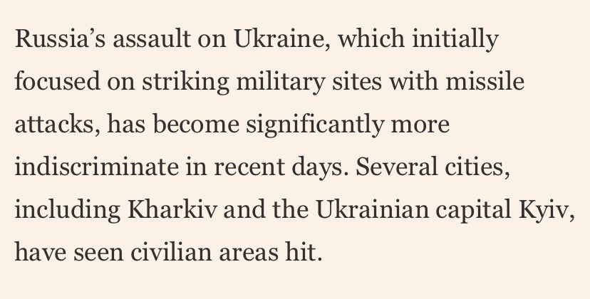 I started this thread by stating that Russia initially focused on military targets, and warned that this wouldn’t last. Here’s the Financial Times noting the same thing: on.ft.com/3C5AQaJ