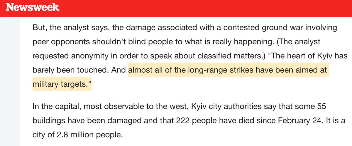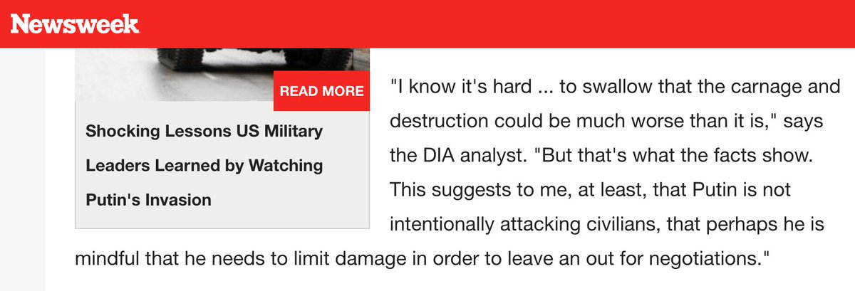 Russia has not used anywhere near its full military power. It's avoided civilian areas & focused on NATO-tied military targets. That's why CNN-MSNBC-Fox have so little actual footage. US can avoid disaster if it stops treating Ukrainians as cannon fodder & gives up on NATO there.