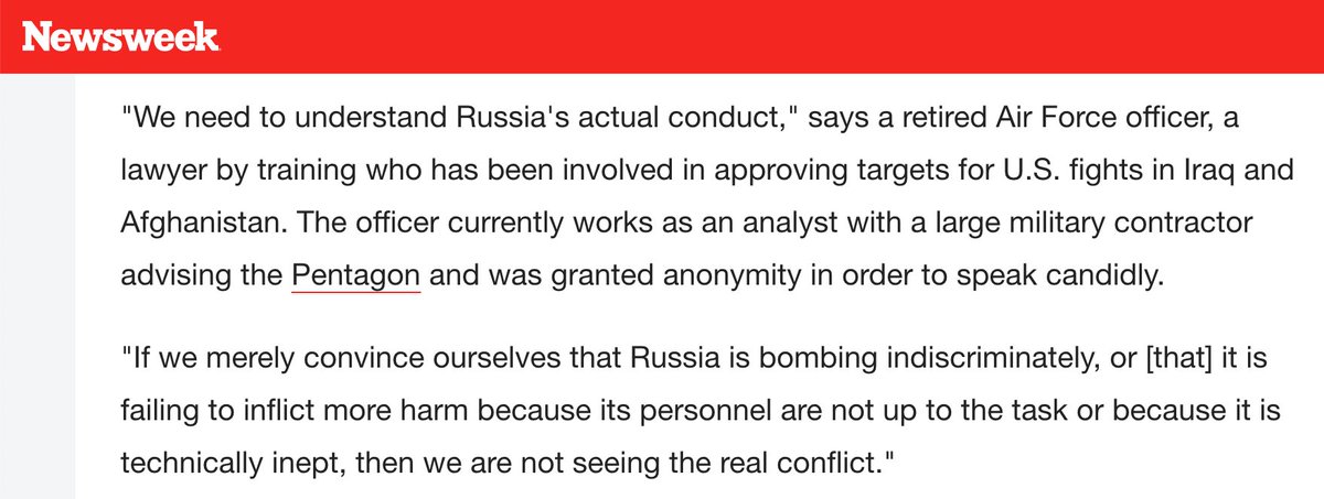 "We need to understand Russia's actual conduct. If we merely convince ourselves that Russia is bombing indiscriminately... then we are not seeing the real conflict." -retired Air Force officer