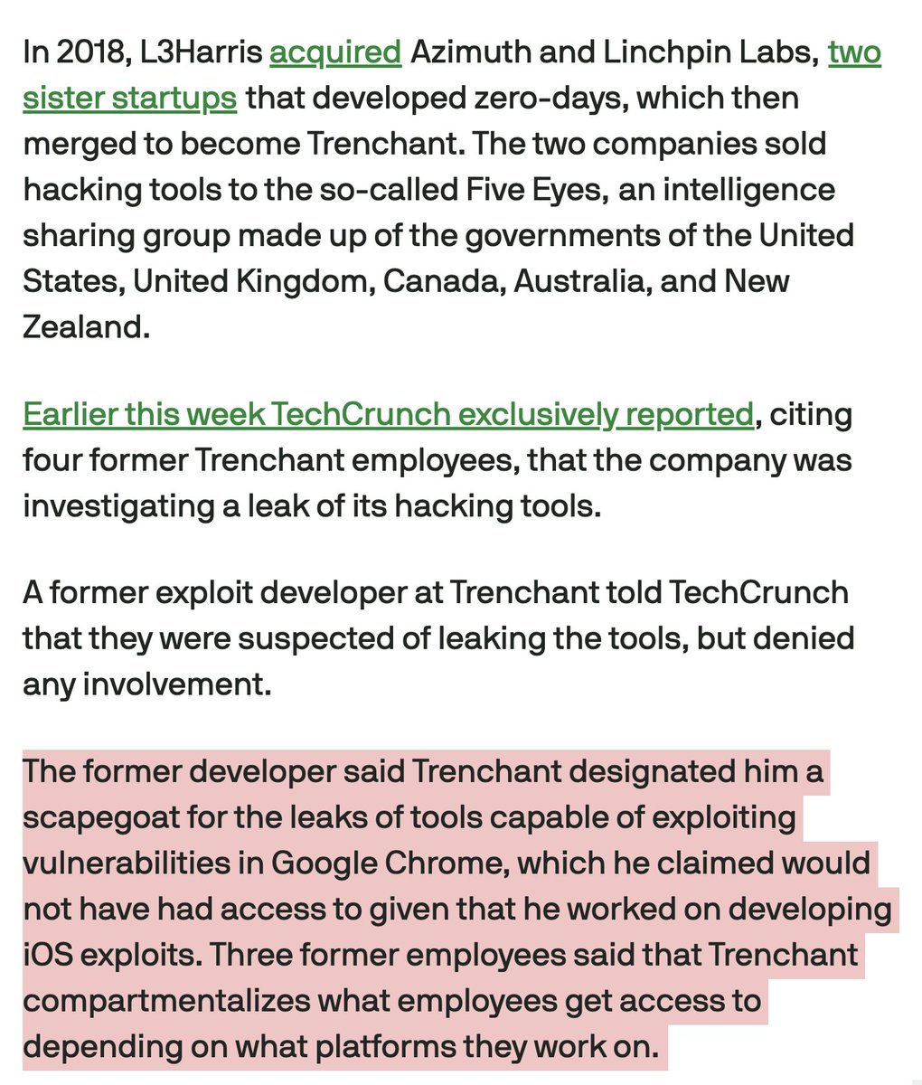 2/ If true, a tooling leak at boutique firm Trenchant wouldn't be the first time that exploits from commercial offensive vendors wind up... in the wrong place.