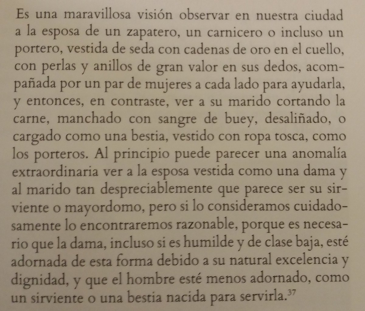 3️⃣9️⃣ Tan distinta podía ser la percepción pasada y presente del matrimonio para la mujer que había quienes entendían su situación como una de privilegio, similar a la del niño como "rey de la casa". Lucrecia Marinella escribió en 1653: