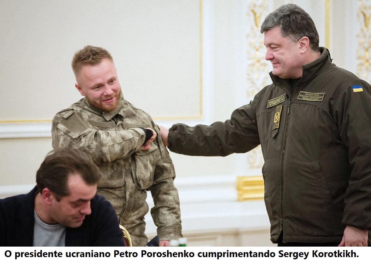 Korotkikh recebeu proteção e financiamento do governo neofascista ucraniano que emergiu após o golpe de 2014. O novo presidente da Ucrânia, o bilionário Petro Poroshenko, concedeu cidadania ao neonazista e o integrou à estrutura oficial da Polícia Nacional.