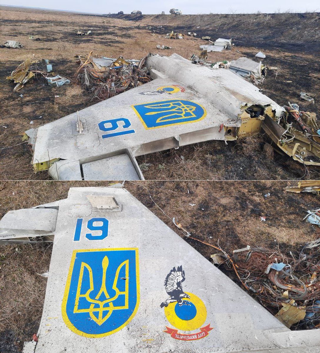 Un caza ucronazi derribado por el ejercito ruso en Kherson esta mañana, con el escudo del estado nazi de Ucrania, el mismo escudo que usaban los colaboracionistas nazis en 1941.
