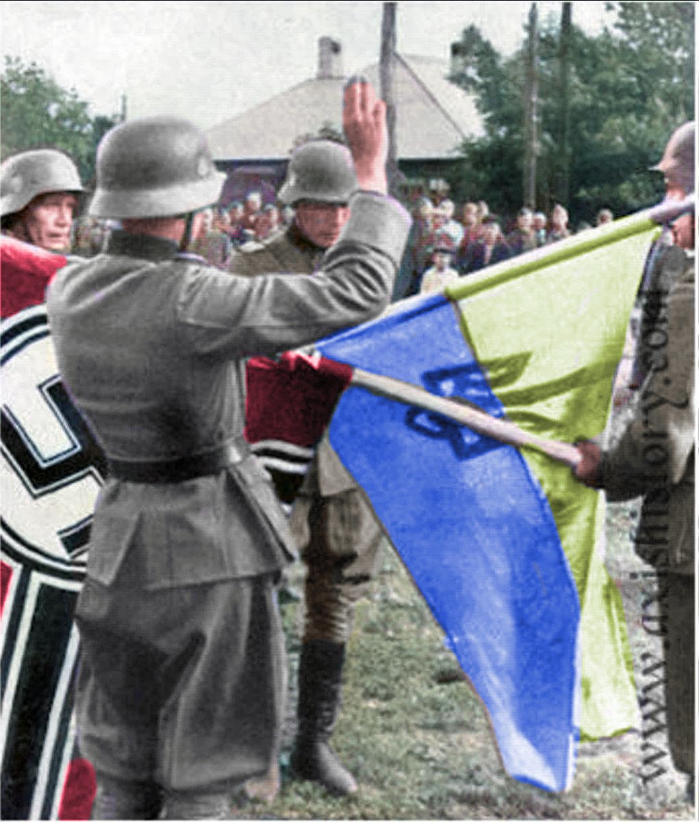 Como se puede observar, la base estaba llena de simbología fascista copia de la hitleriana, con el águila imperial y el escudo de los nazis ucranianos que colaboraron con Hitler en 1941 por todos lados.