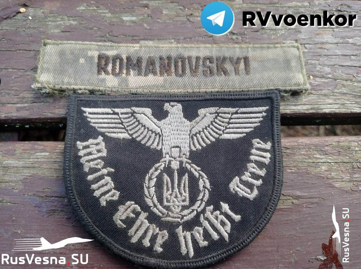 Uno de ellos, "Romanovski", llevaba un parche del aguila imperial nazi y el lema "Meine Ehre heißt Treue" (Mi honor se llama lealtad), lema de las SS Waffen de la Alemania Nazi.