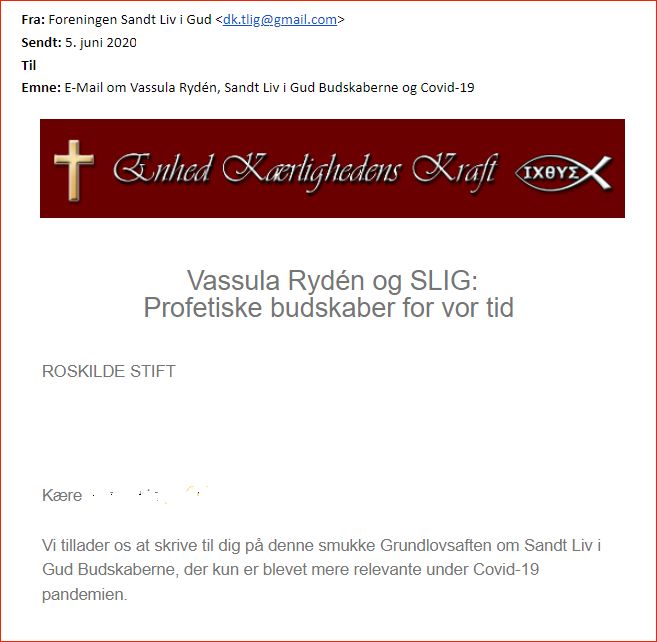 Juni 2020: ifm Covid-19 får folkekirke præsterne i Roskilde Stift uopfordret mails fra "Sandt Liv i Gud"
