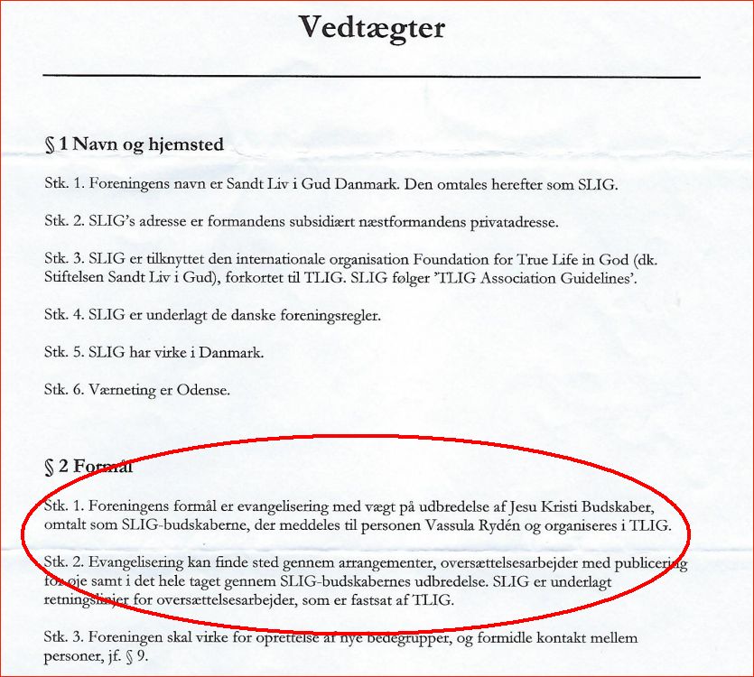 ...under navnet "Sandt Liv i Gud" (SLIG) - Vassula hævder at hun modtager beskeder fra Jesus, ved at hendes hånd er styret af Jesus, der af den vej skriver beskeder....