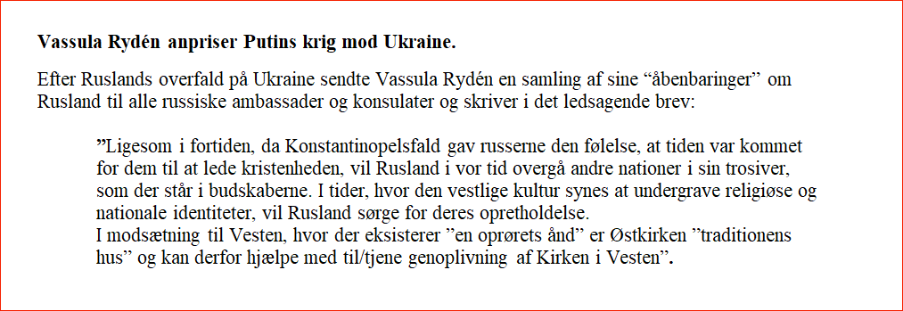 Thranholms pro-Putin optikker og grænseløs anprisning af ham er funderet i "profetier" fra Vassula Rydén - som der er bygget en forening op omkring...