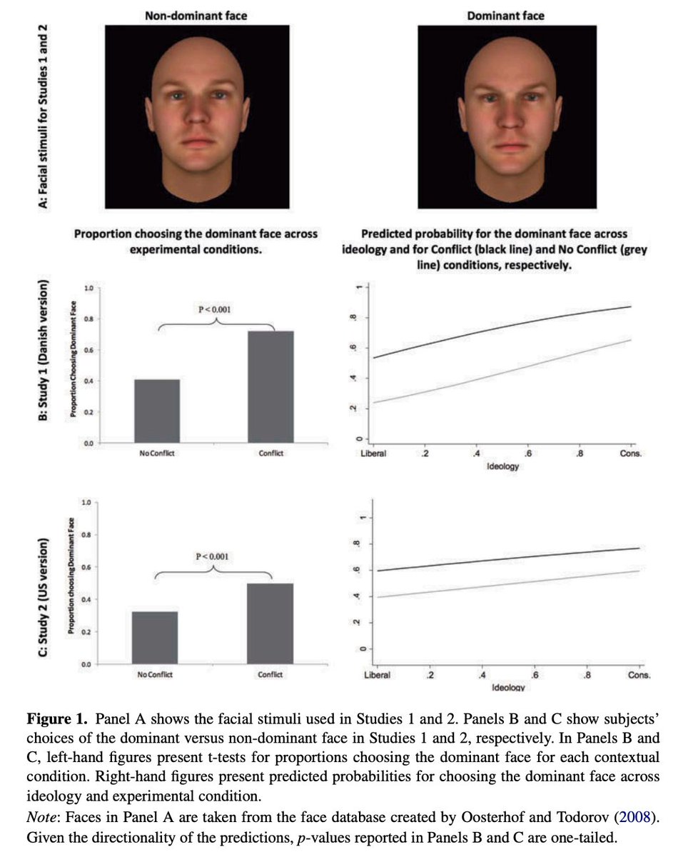 In our research, we find that shifts towards dominance happen with high speed in conflicts. Exposure to threat from other groups (but not natural threats) elicit immediate support for dominant leaders (doi.org/10.1111/pops.1…) (6/16)