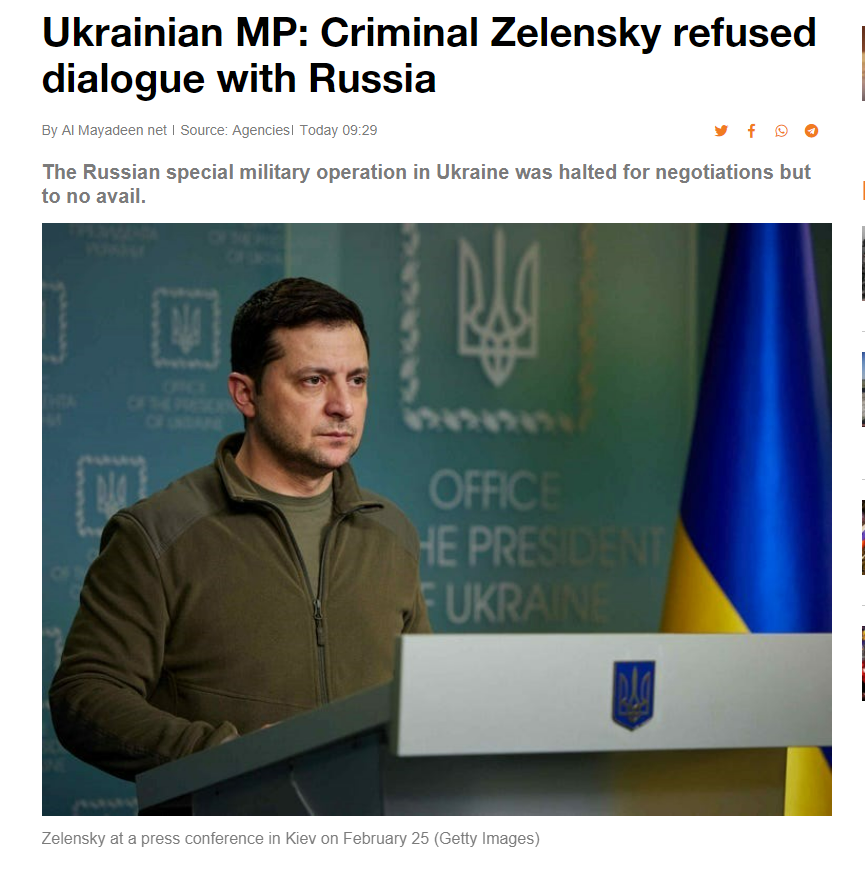 The Russian Foreign Ministry as saying that “the government in Ukraine has lost its legitimacy,” in light of the Russian military progress. en.mdn.tv/6YOn