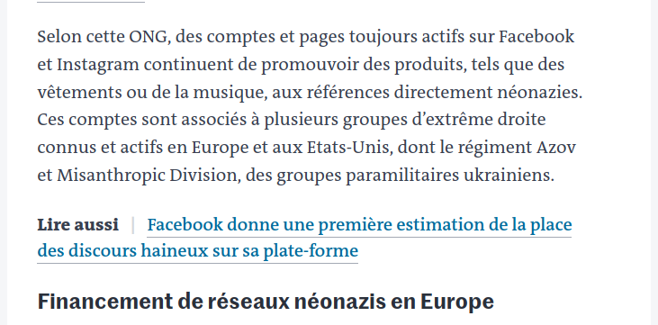 Et en dehors des articles consacrés spécifiquement à l'Ukraine, vous trouverez aussi pas mal de mentions de ces extrémistes. Ici on parle de l'extrême-droite sur les RS en Europe.