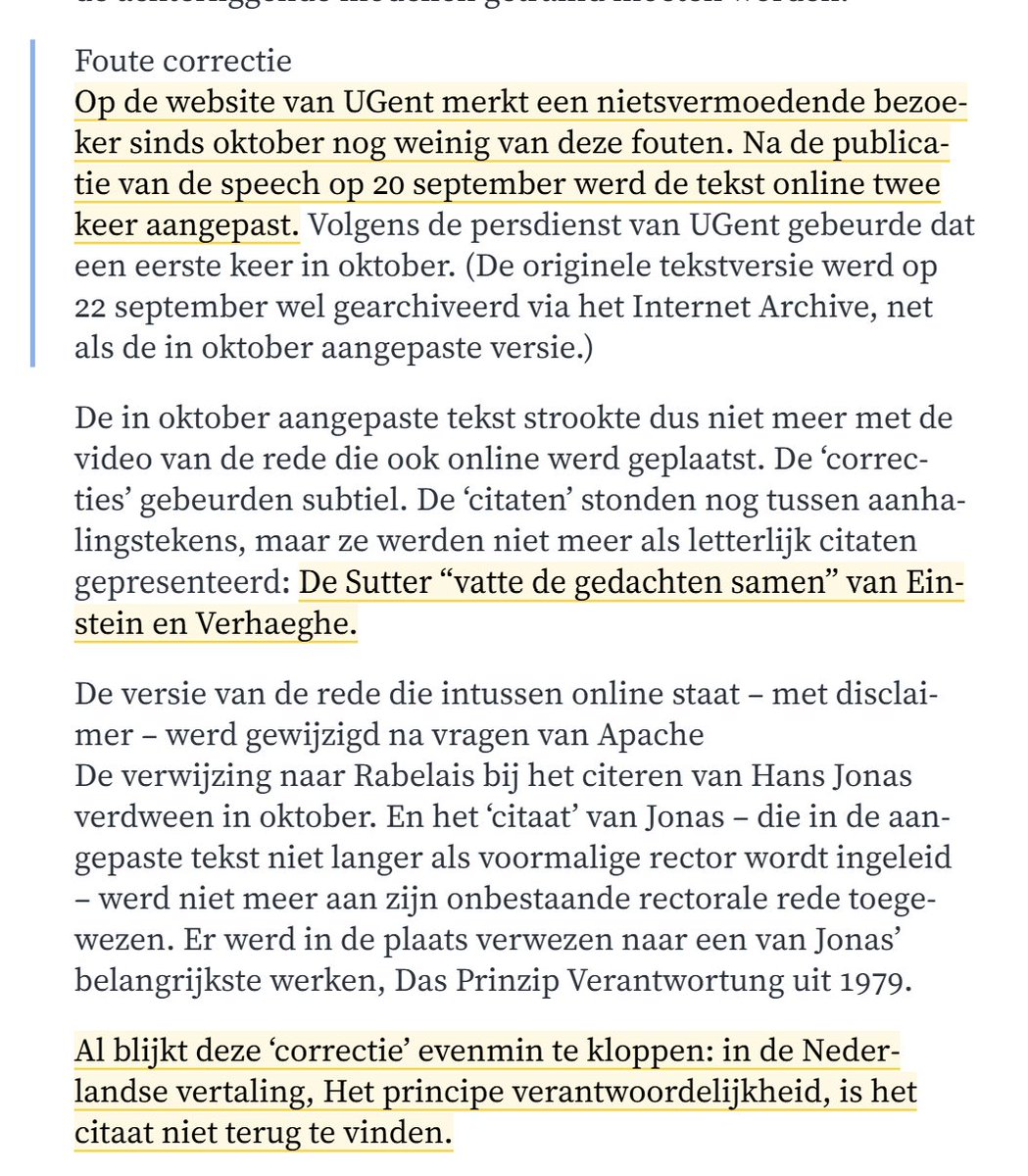 En dat vervolgens wegmoffelen met leugenachtige correcties, alsof De Sutter de gedachten van Einstein en Jonas "samenvatte". Nonsens, want de toespraak van Einstein gaat over iets heel anders en de rectorale rede van Hans Jonas BESTAAT NIET EENS. Onvoorstelbaar, @UGent. /2