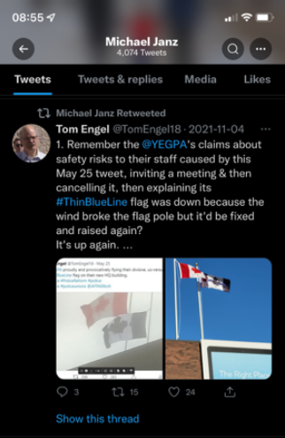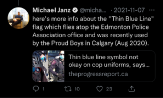 The final 3 images are all thin blue line related, including our report confirming that it is not permitted for EPS officers to have it on their uniform.