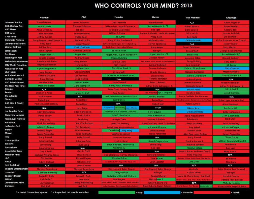 Que alguien me explique razonadamente por qué los propietarios,CEO’s,…de los medios de comunicación y de las farmacéuticas son Judíos Sionistas: