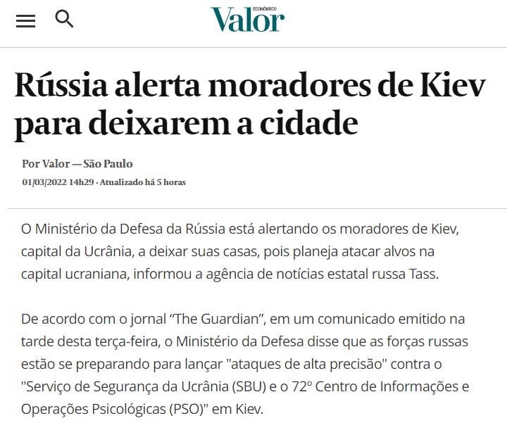 A Rússia está avisando com antecedência os locais que serão submetidos a ataques, informando inclusive o nome das instalações que serão atacadas, dando tempo hábil para evacuação e garantindo estradas seguras para o deslocamento de civis.