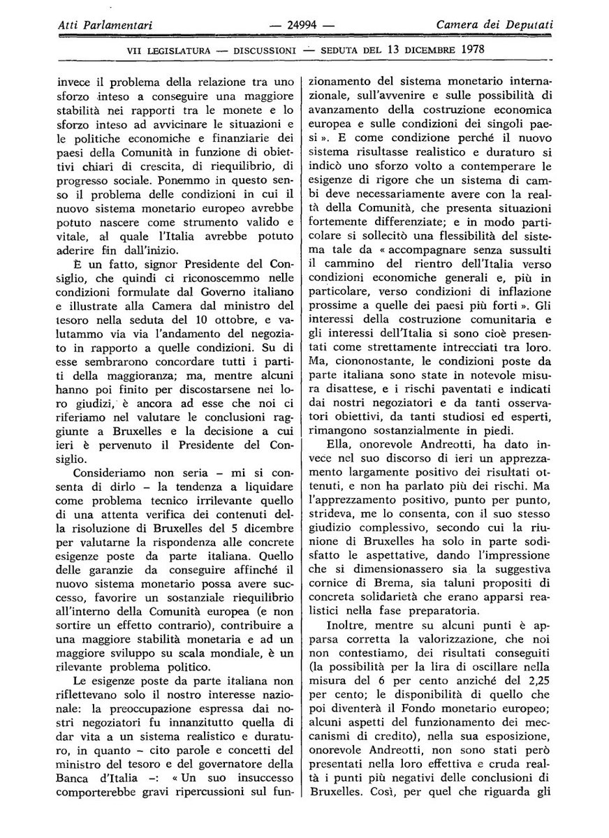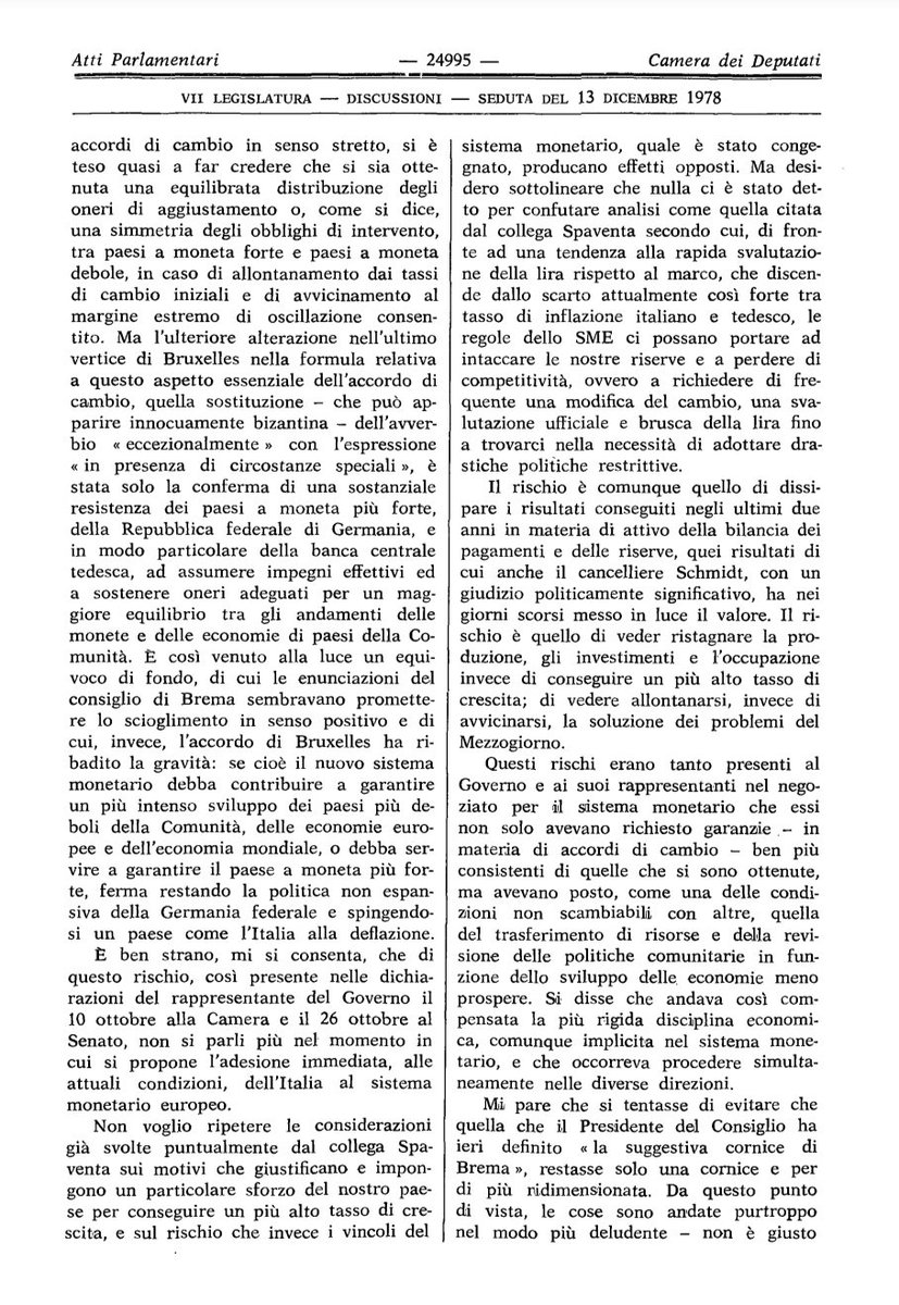 Lo sapeva Giorgio Napolitano (proprio lui...), che nel 1978 dalle file del partito comunista in Parlamento fece un intervento impeccabile contro l'ingresso dell'Italia nello SME.