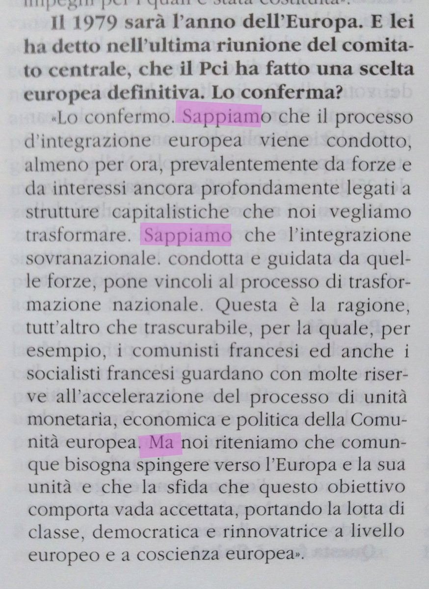 Lo sapeva Enrico Berlinguer (che l'Europa credeva di cambiarla da dentro...), come si evince da un'intervista di Scalfari sempre del 1978.
