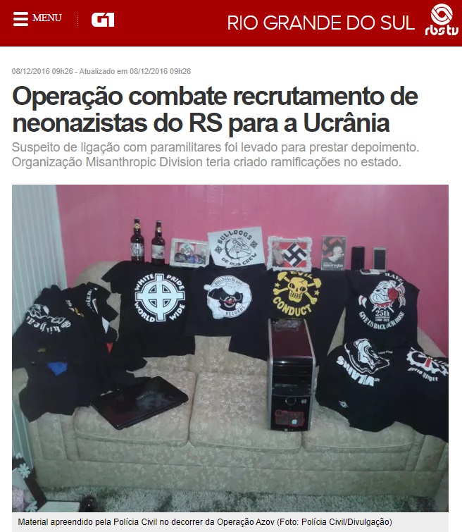 Diversas das centenas de células neonazistas que se multiplicaram no Brasil nos últimos anos possuem vínculos com organizações neonazistas ucranianas.