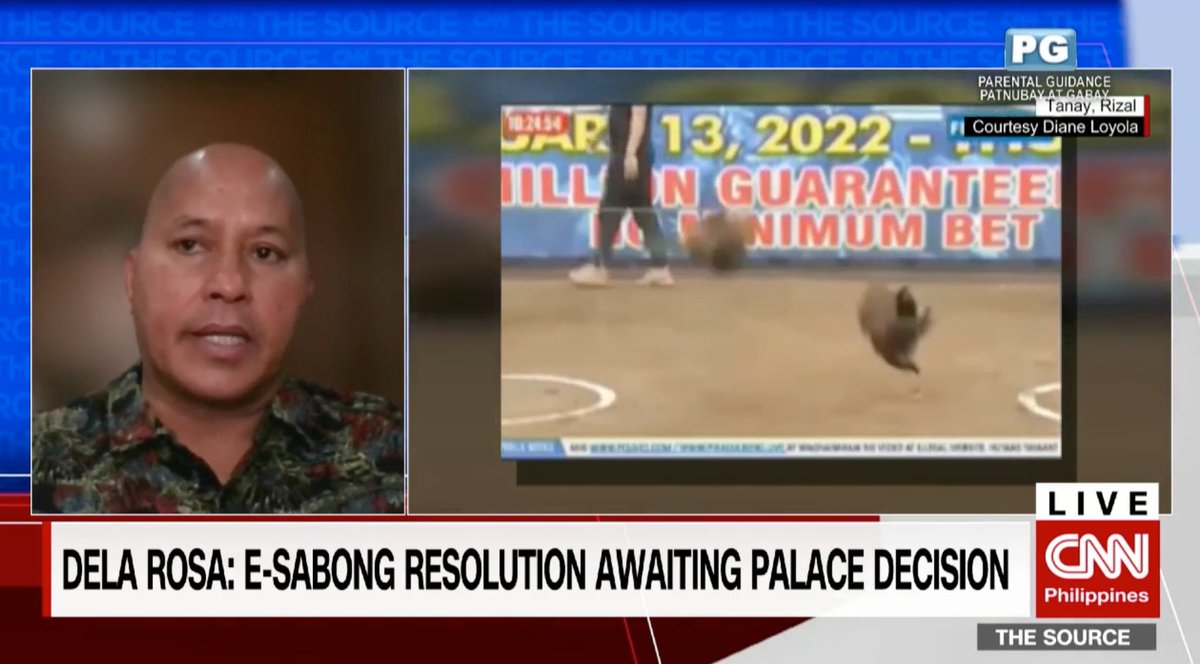 Sen. Dela Rosa says the Office of the President received yesterday the Senate resolution suspending operations of online cockfights or e-sabong: We're waiting for action on our unanimous decision. Pagcor says they agree with our resolution.