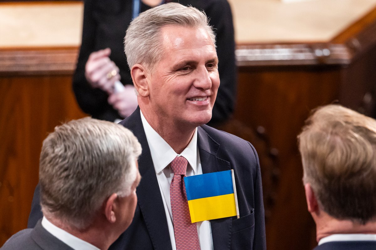 In a show of solidarity with Ukraine, Biden asked the audience for his speech to stand. Many lawmakers and guests held Ukrainian flags trib.al/4Q9urWq