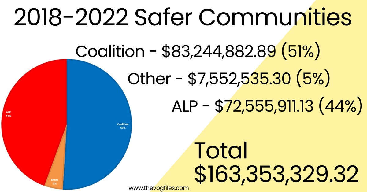 As you can see the Distribution is skewed to the coalition Seats big time. Labor have 68 Seats and the Coalition have 77 so you would expect the distribution to be fairer. But it's not. Let us remind you of the 9 other Programs we have analysed.