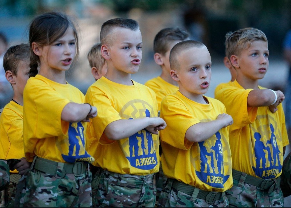 As crianças também participam de atividades recreativas nos acampamentos da milícia neonazista Batalhão de Azov, onde aprendem a repetir saudações nazistas como "Sieg Heil", manusear fuzis e cantar músicas sobre empilhar os cadáveres dos russos.