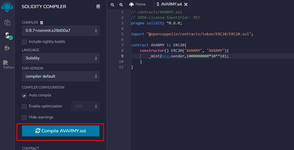 2.5 Bu kodu yapıştıdıktan sonra token ismini ve arzını değiştirebilirsiniz, ben AVARMY ismini verip 1 Milyar adet bastım. -(orada supply'ın yanındaki 18 rakamı ise 1 adetten sonra gelen 0'sayısını işaret eder "örn : 1.000000000000000000 (18 adet sıfır, bu bölünebilir token demek)