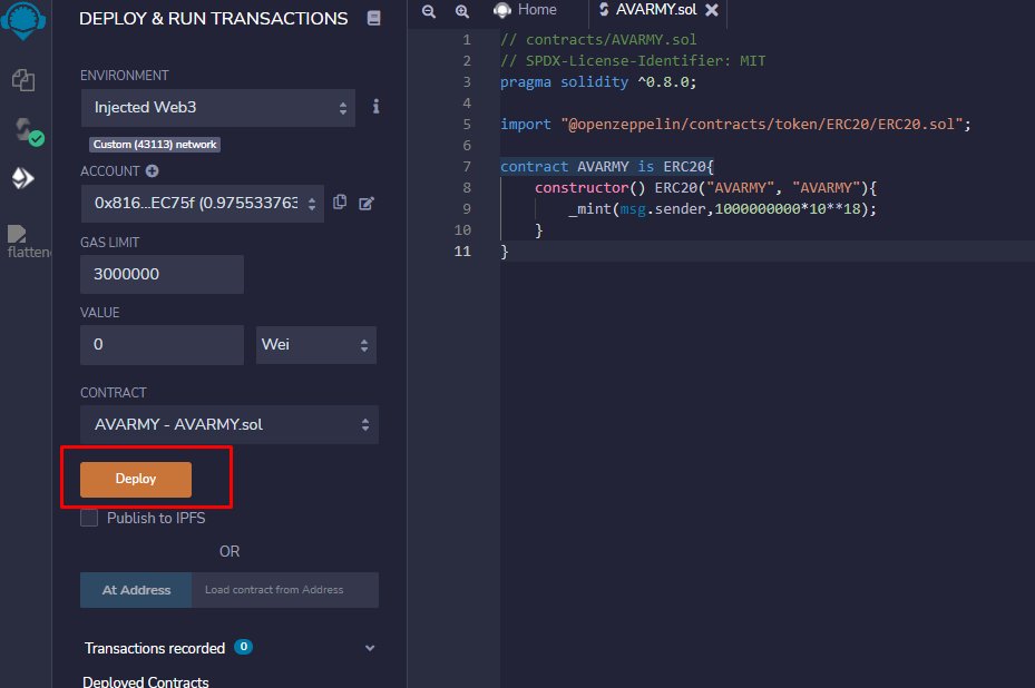3.1 Tıkladıktan sonra metamaskınızın bağlı olduğundan emin olun, tüm bu işlemleri #Avalanche fuji testnette ilk etapda test edebilirsiniz arkadaşlar. şimdi DEPLOY'a tıklayın.