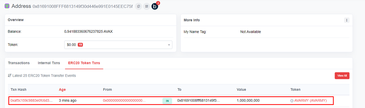3.4 snowtrace.io'ya gidin ve bağladığınız metamask'ı aratın.