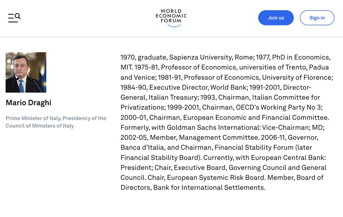 13). Mario Draghi (Italy) - predecessor Mattarella was not WEF. why was Italy hit so hard by Cough Cough....hmmm
