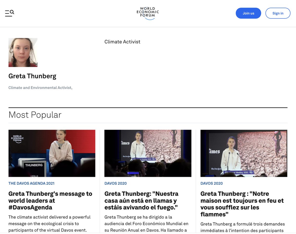 20). Al Gore (USA), John Kerry (USA), Greta Thunberg (Sweden), Mark Zuckerberg (Facebook)